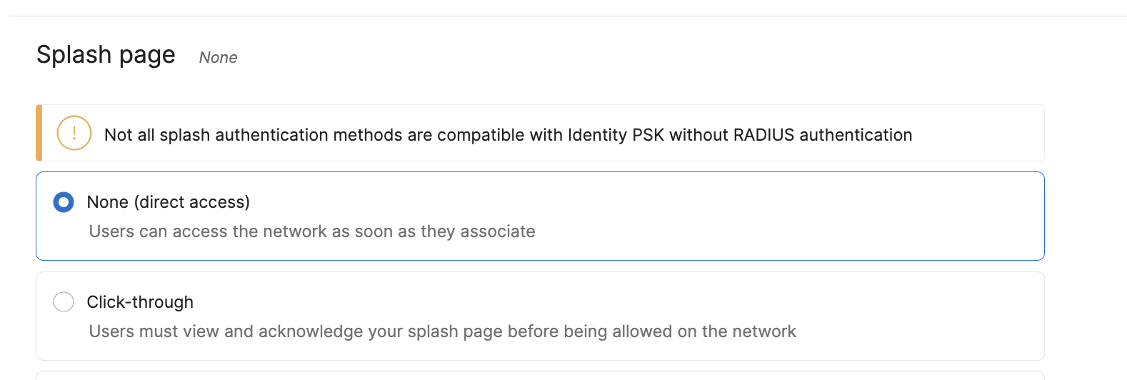 - In Meraki Dashboard navigate to: Wireless-> Access control-> Splash page.