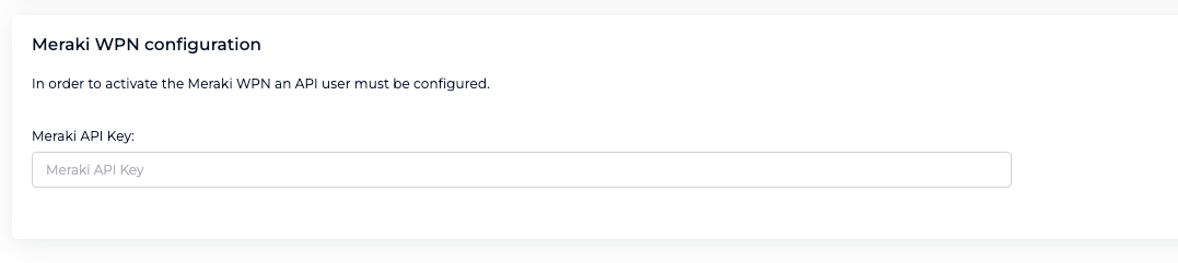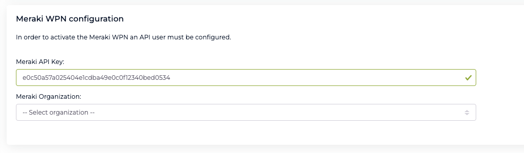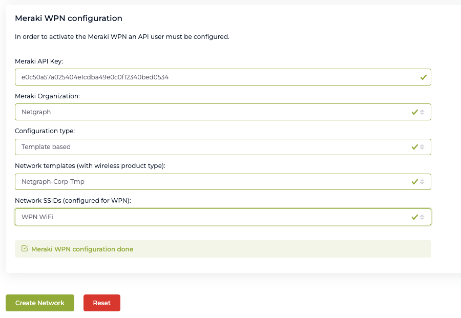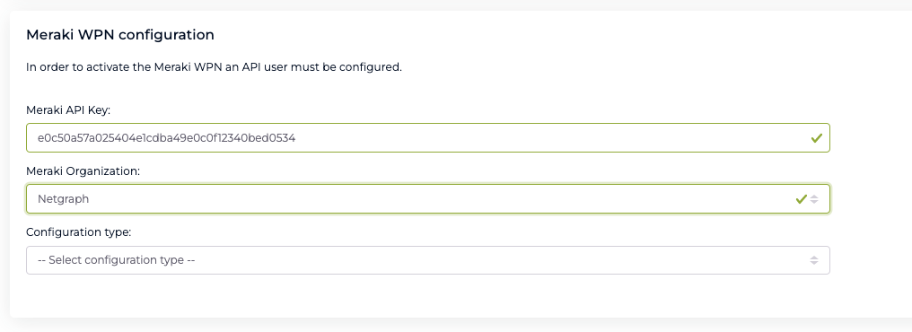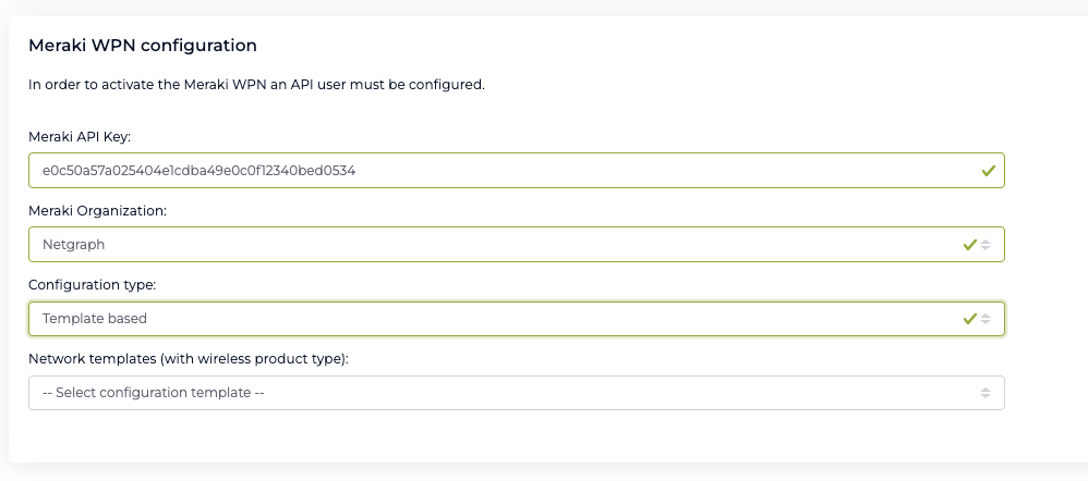 When the Meraki WPN feature is configured you can proceed with the setup in the Netgraph Connect administration portal.